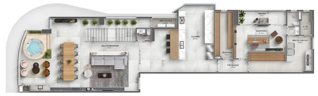 Em espaços sofisticados no pilotis e vigésimo andar, desfrute das diferentes atrações deste verdadeiro oásis, dedicadas ao convívio e estímulo do bem-estar.