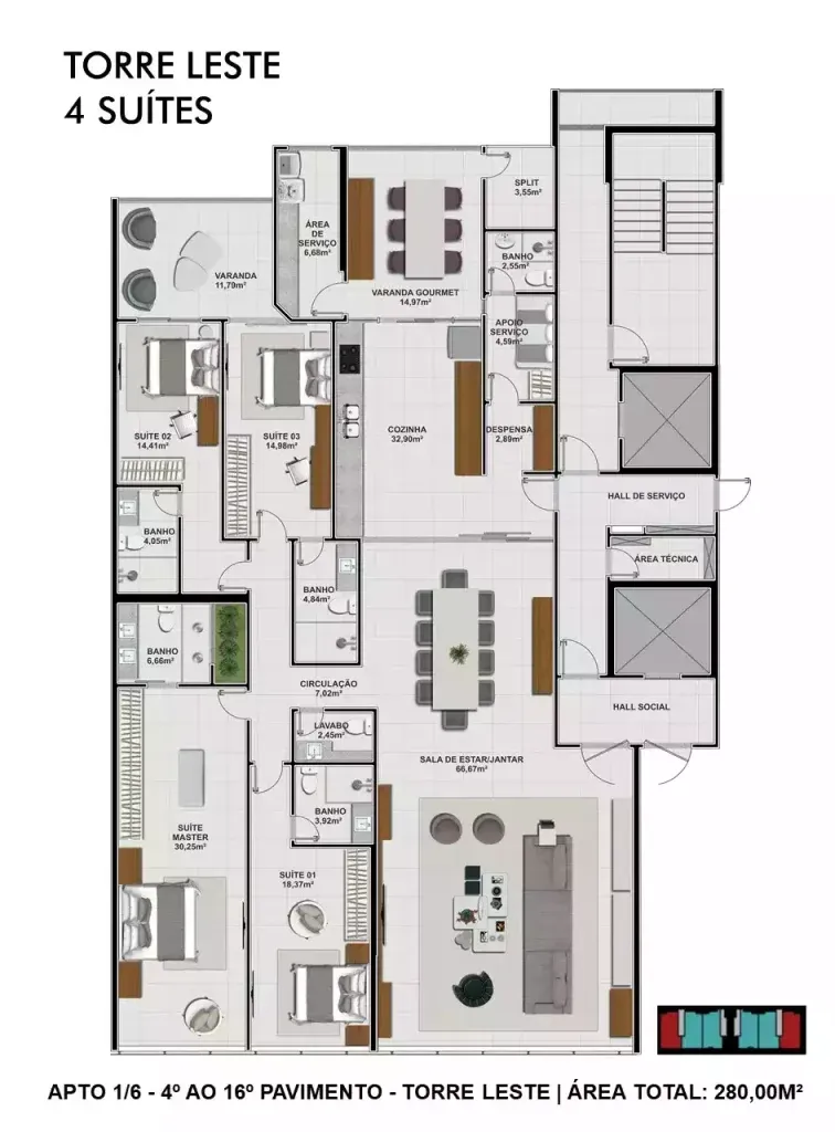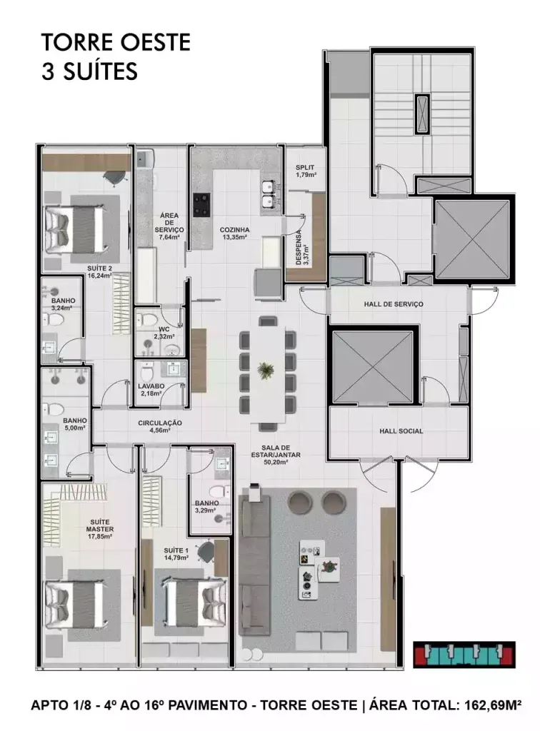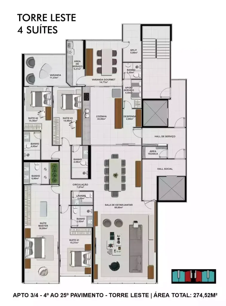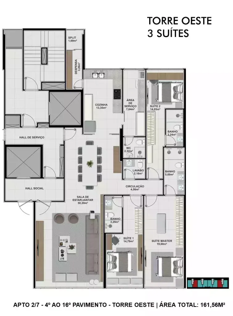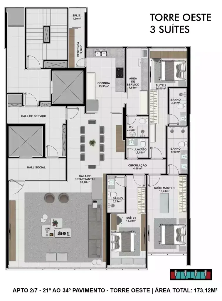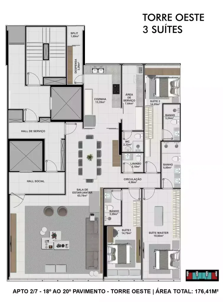 Oferecemos plantas com 3 e 4 suítes para atender às necessidades da sua família. Descubra o conforto e a elegância em cada opção.